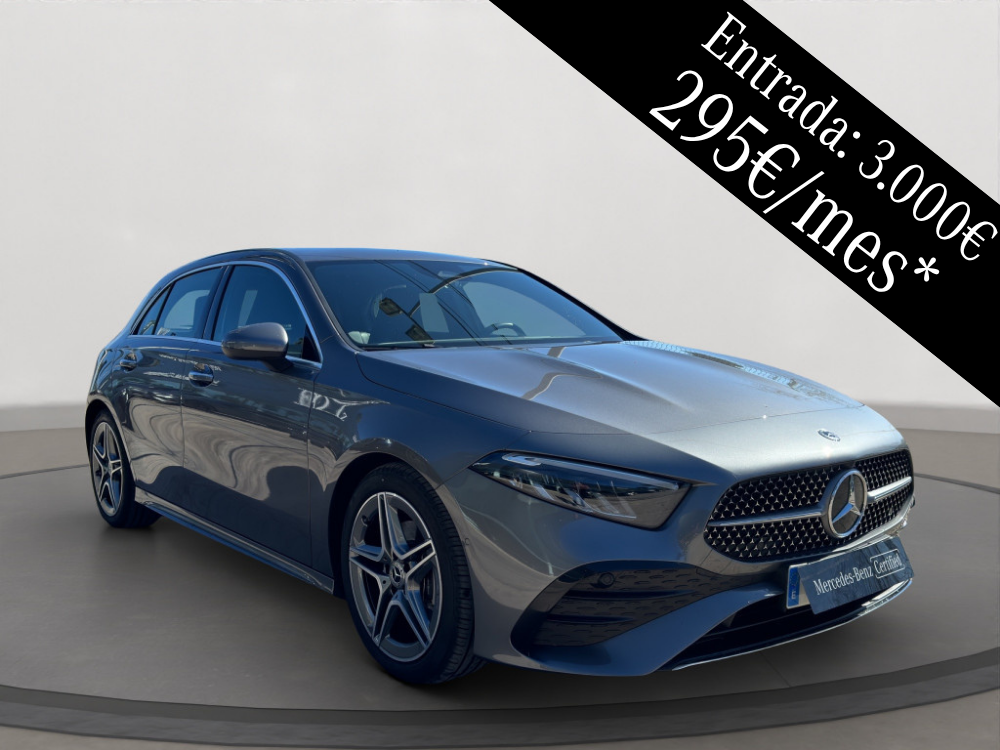 *Ejemplo de Financiación para particulares con Alternative de Mercedes-Benz Financial Services España, E.F.C. S.A.U., para un Clase A (W/V-177) - 180. PVP 31.490,00€ (Impuestos, transporte, gastos de preentrega y matriculación incluidos). Válido para ofertas realizadas y vehículos matriculados hasta el 31/03/2026 solicitudes aprobadas hasta el 15/04/2026 y contratos activados hasta el 31/05/2026, teniendo el cliente un plazo de 14 días hábiles para ejercer su derecho de desistimiento. Permanencia mínima de la financiación de 24 meses. Importe a financiar 28.490,00€. Por 295,16€ al mes en 48 cuotas, 10.000 kilómetros anuales y cuota final de 21.974,79€, plazo total de la financiación 49 meses, entrada 3.000,00€, TIN 7,40%, comisión de apertura 851,85€ (2,99%). TAE 8,70%. Importe total adeudado 36.994,32€. Precio total a plazos 39.994,32€. Coste total del crédito 8.504,32€ e importe de los intereses 7.652,47€ (el posible desajuste de los intereses se debe a la fórmula de redondeo y lo asume la entidad financiera. Sistema de amortización francés).